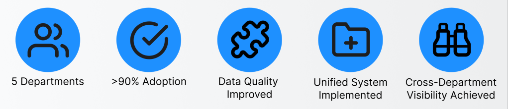 | Unified System Adoption | Adoption became universal by all departments within one year of first department’s rollout. | Department-by-department onboarding minimized organizational disruption and built long-term trust in the platform. |