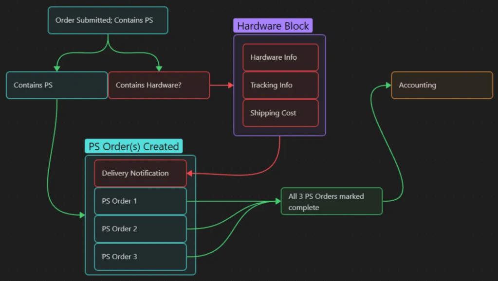 Figure 3. An early PS process mapping which accounts for Hardware also being present in an order.